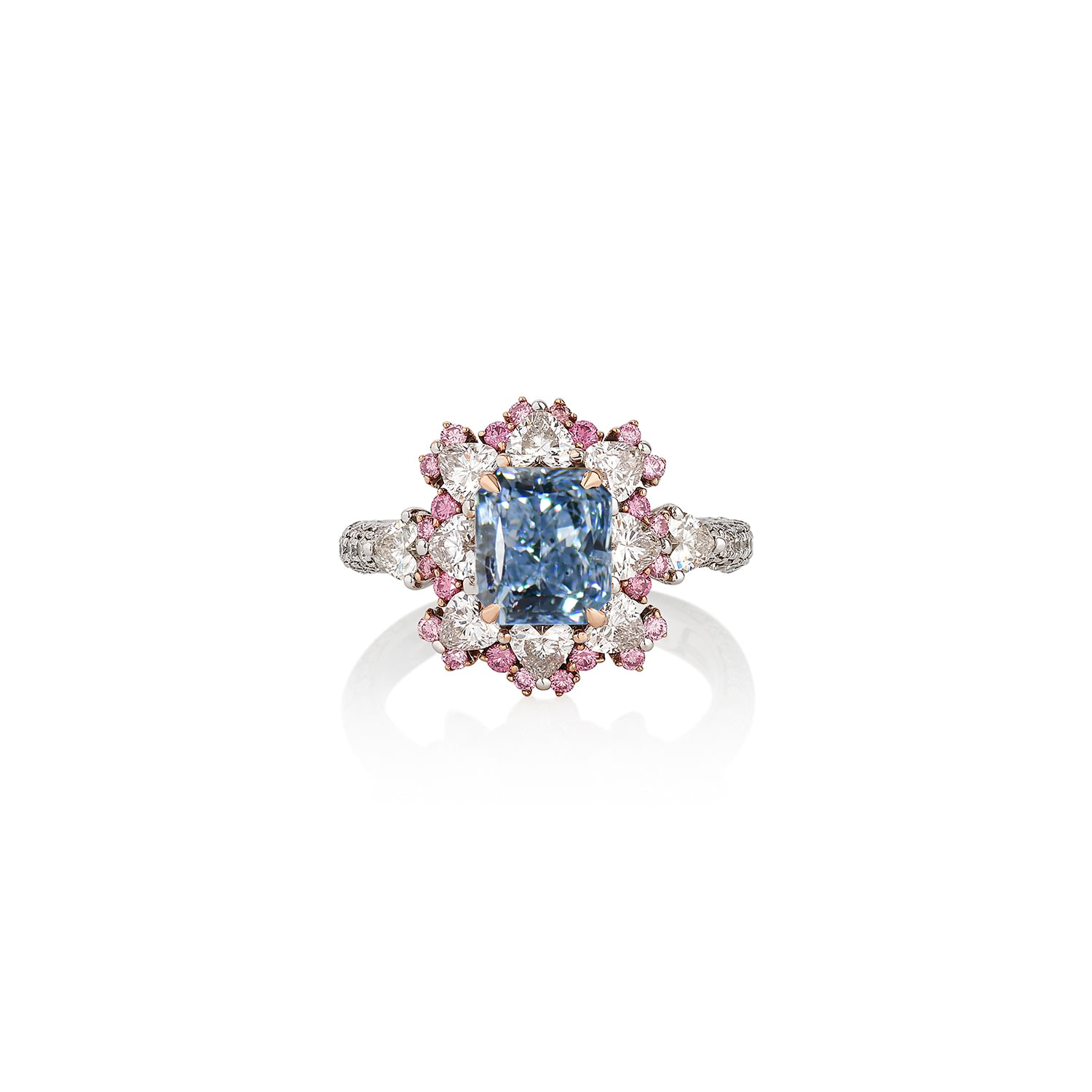 “Like a sky brushed in blue and pink, the 1ct Vivid Blue ring captures the quiet magic where horizons meet beauty.”